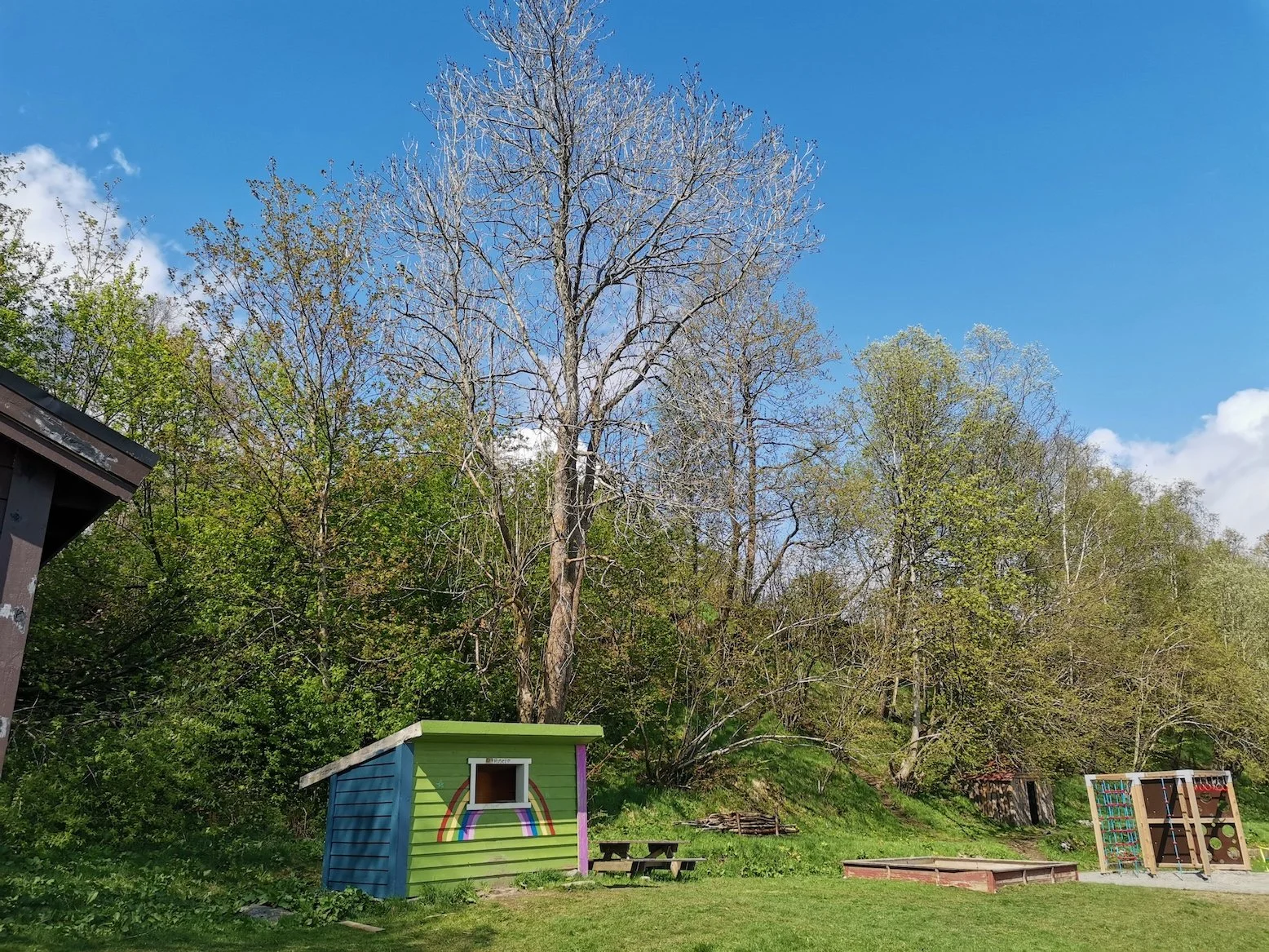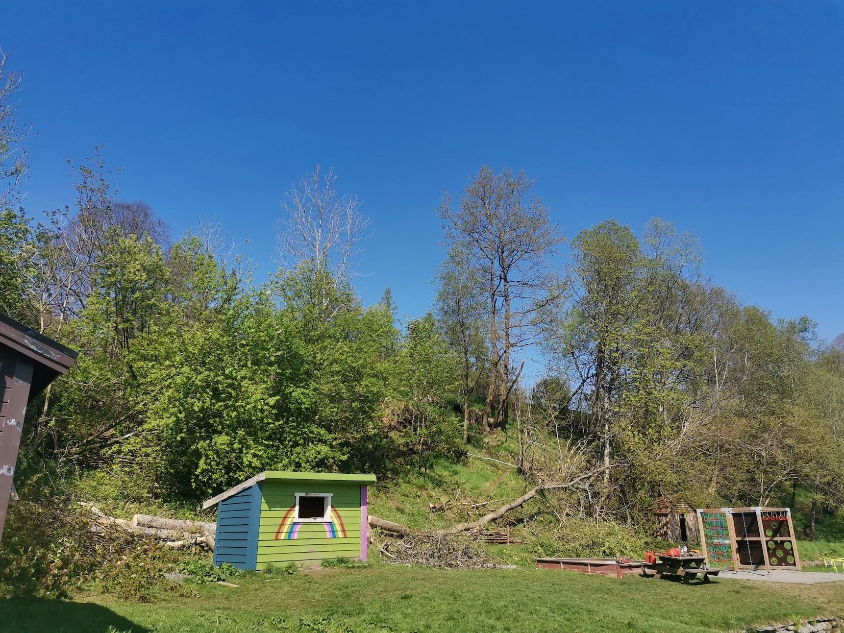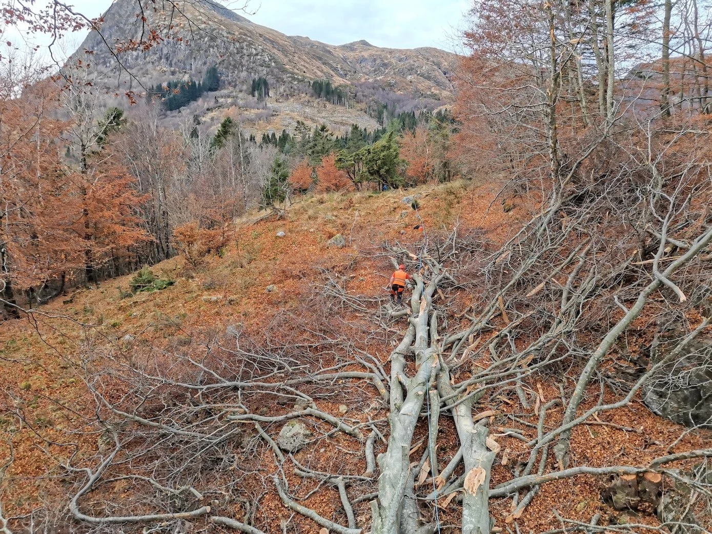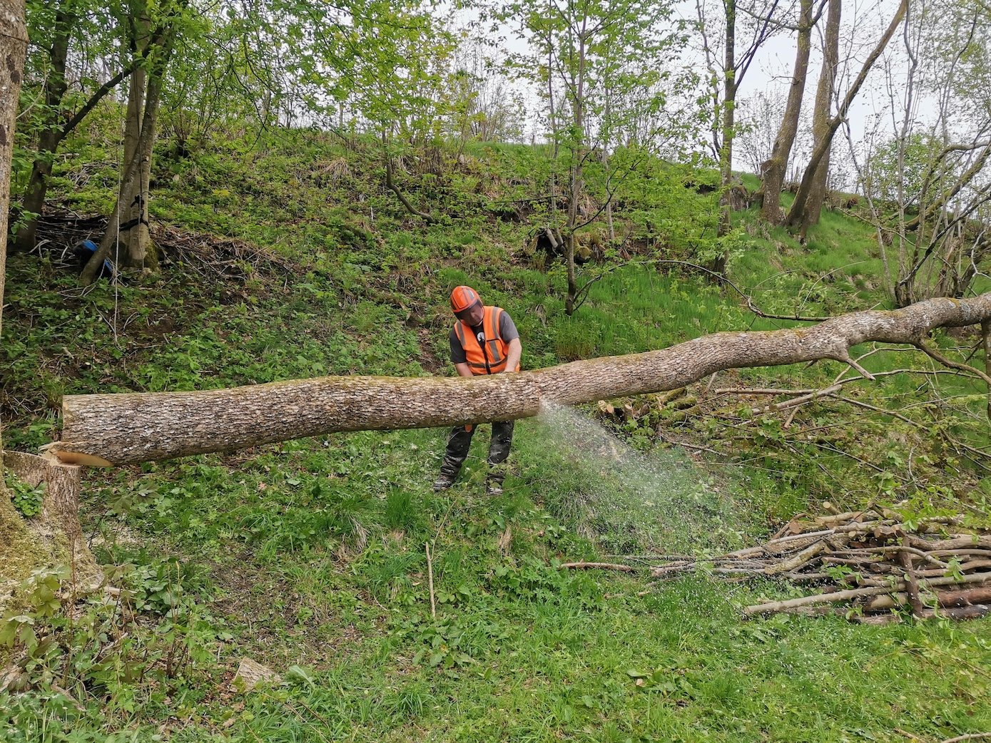 Styving av lønnetrær på et gårdsbruk vha. klatring.
