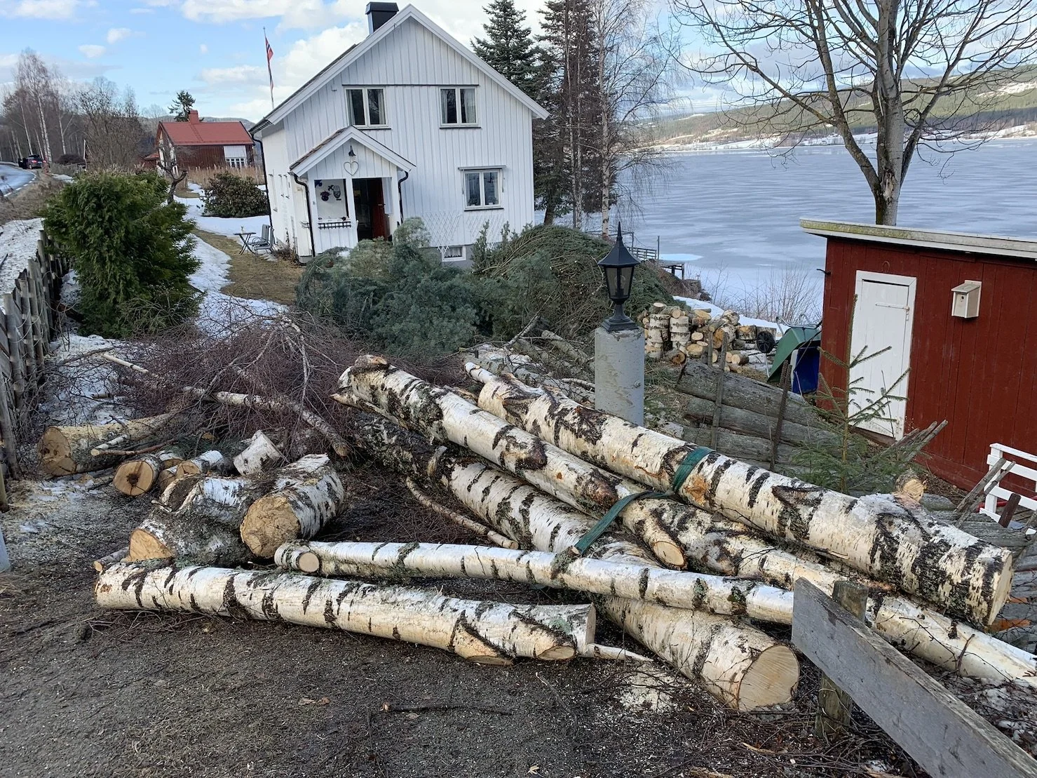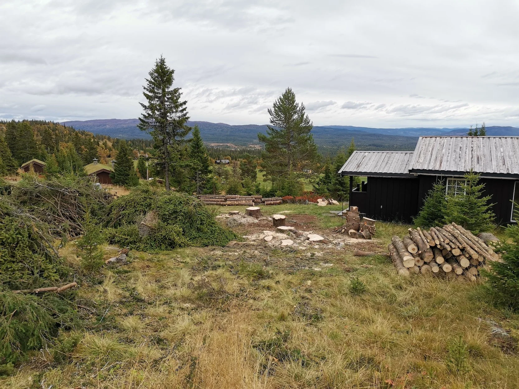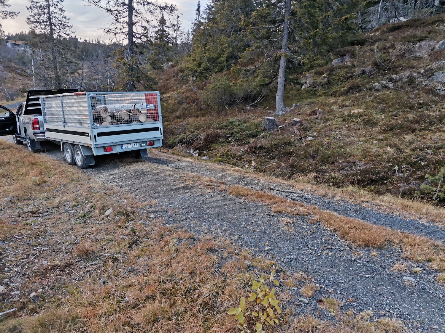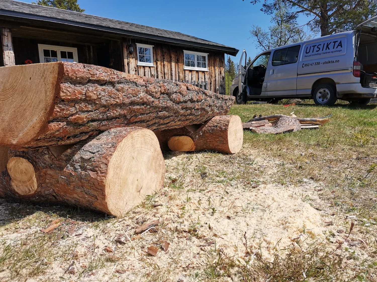 Felling, kvisting, flishugging og bortkjøring av over 100 furutrær for å gi bedre lysforhold og utsikt på hyttetomt.