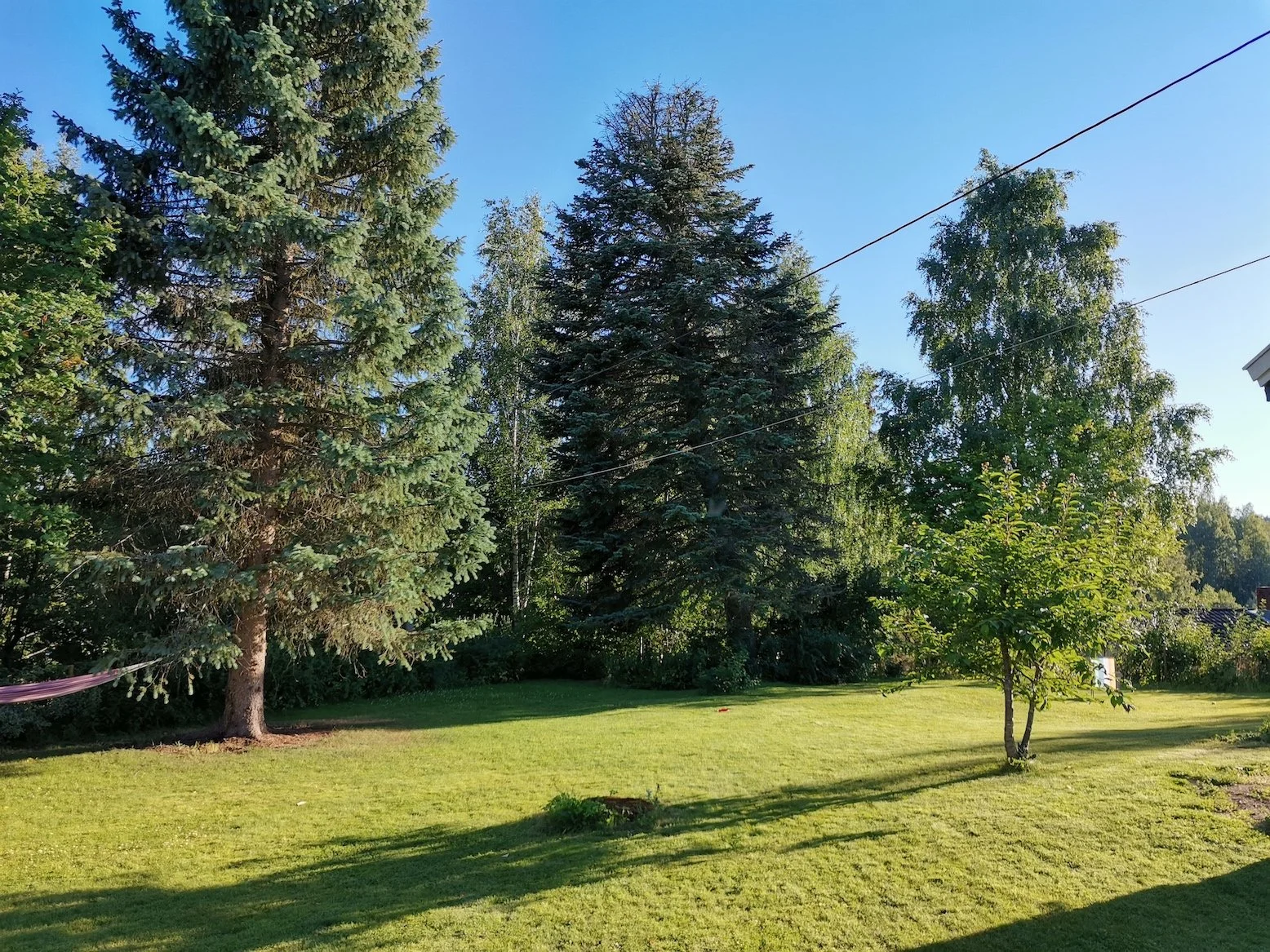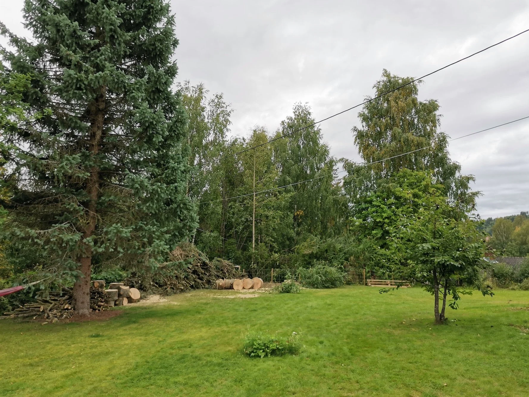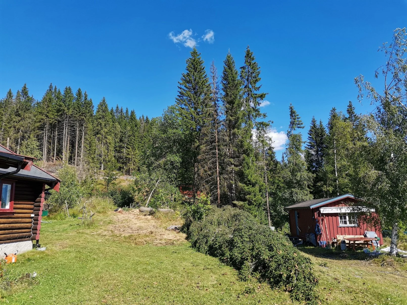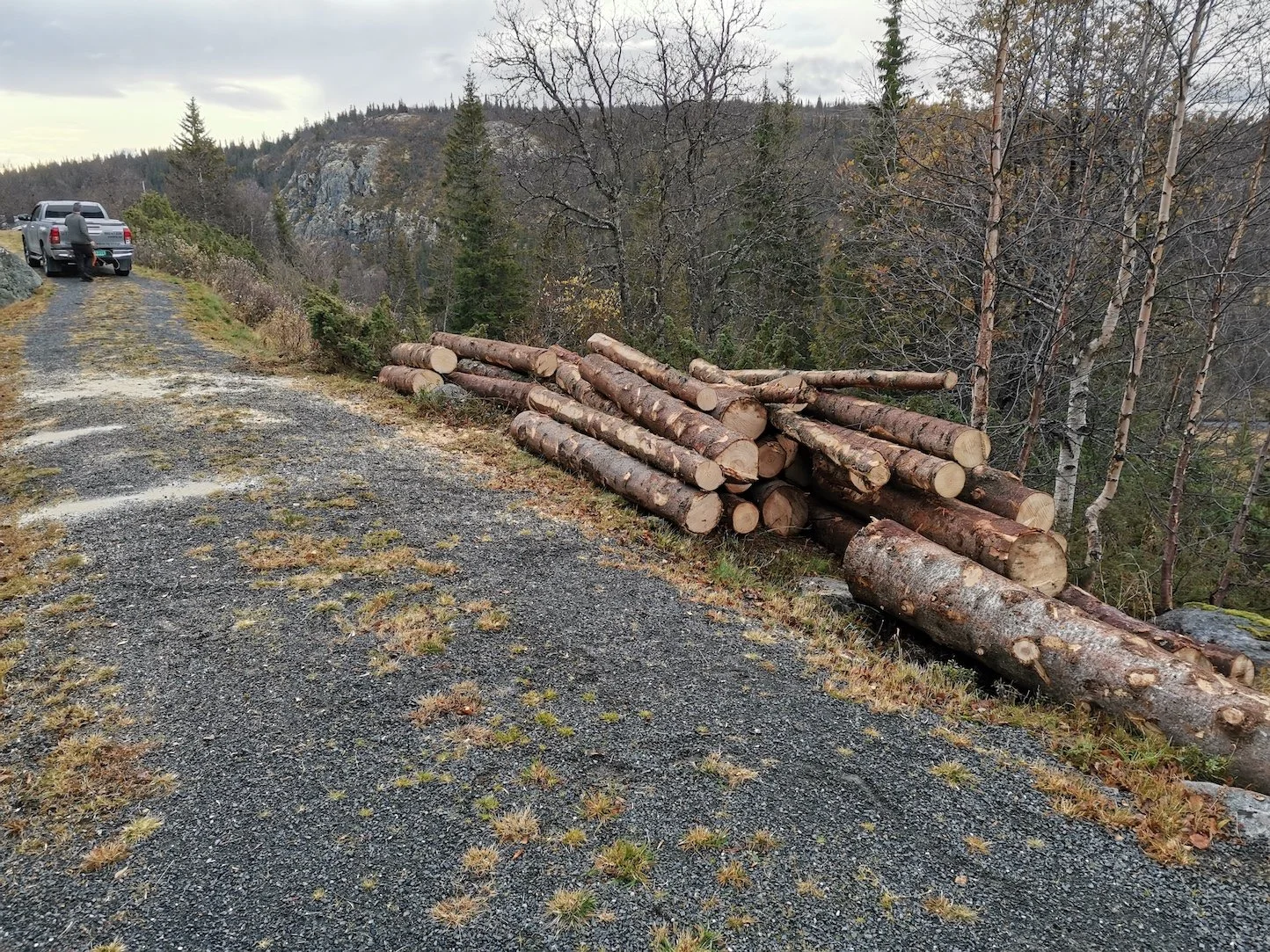 Felling av grantrær og bortkjøring av granbar på hyttetomt.