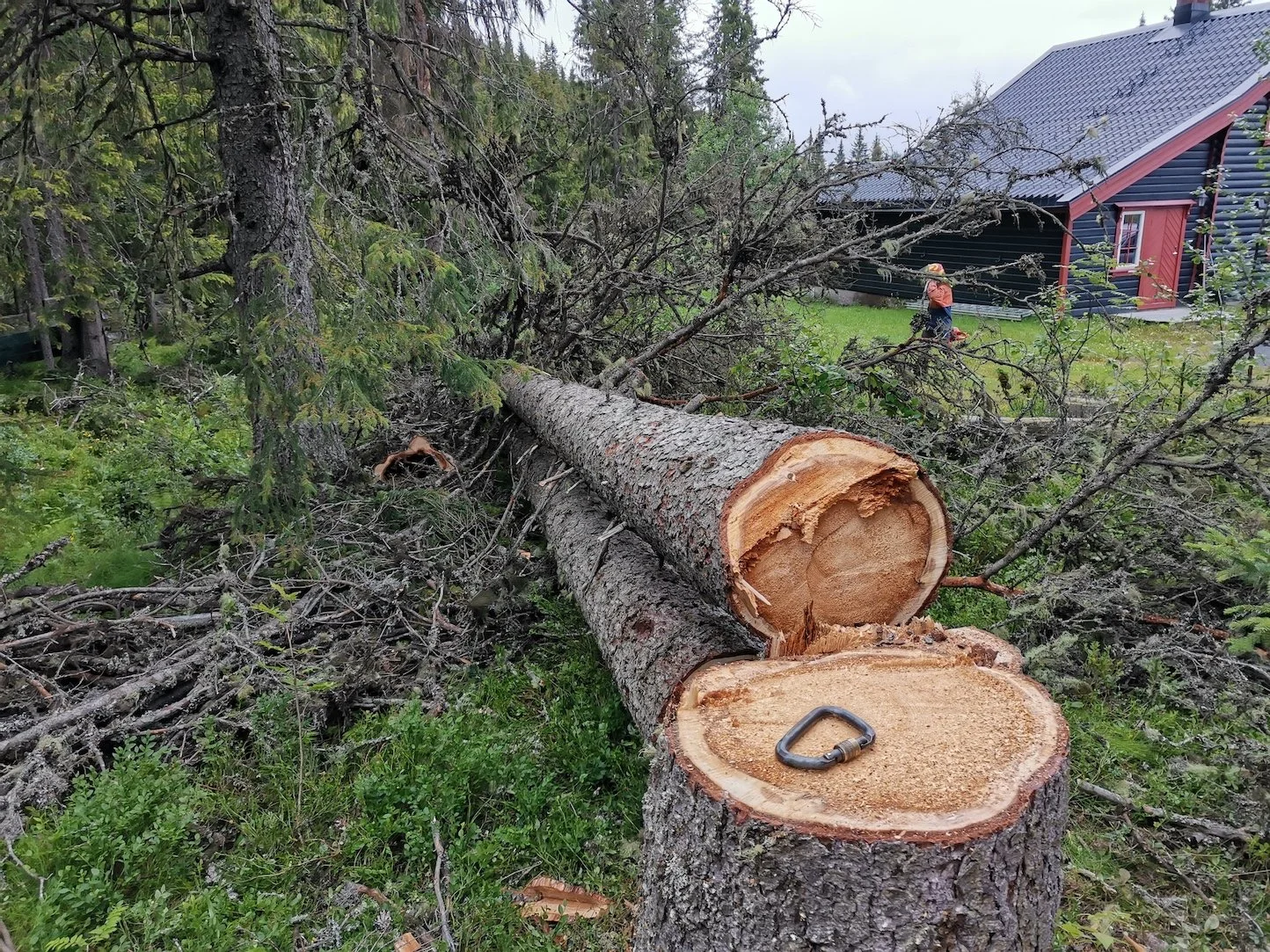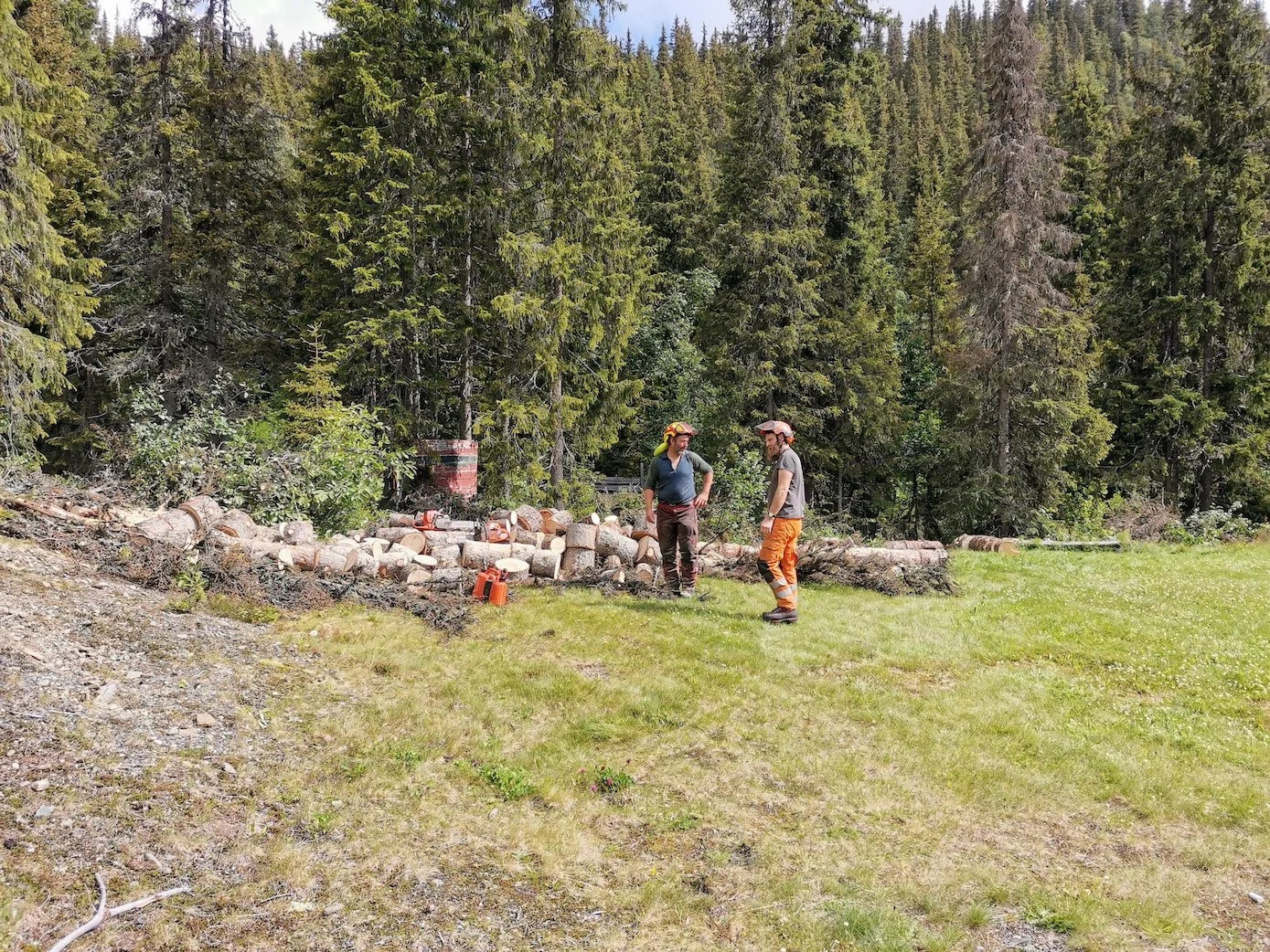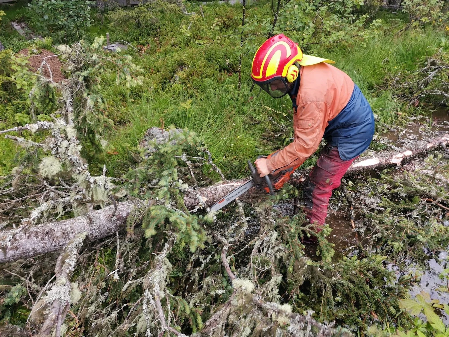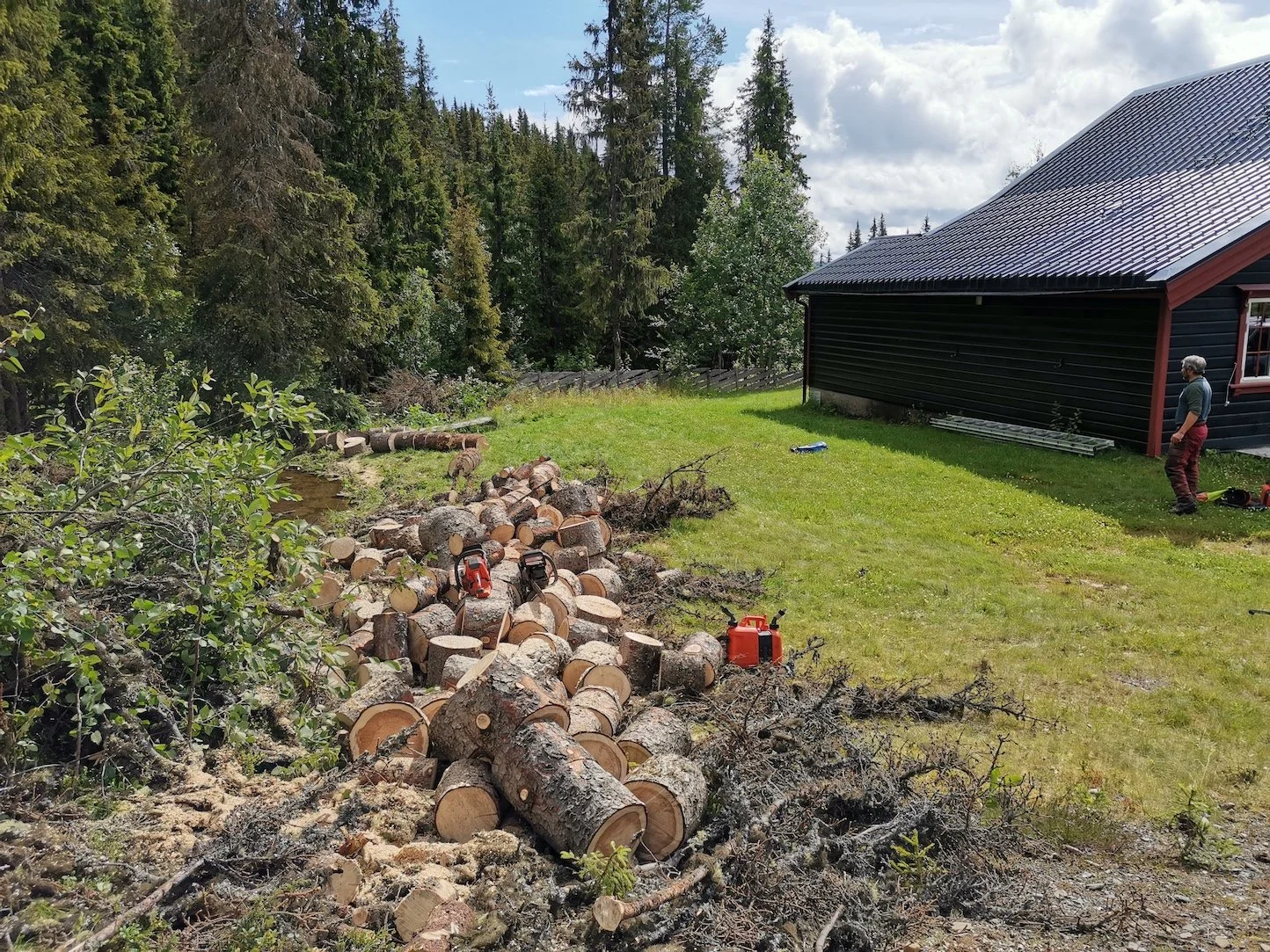 Opprydding i forbindelse med vindfall på hyttetomt.
