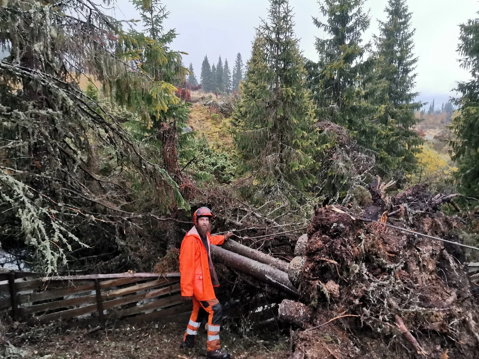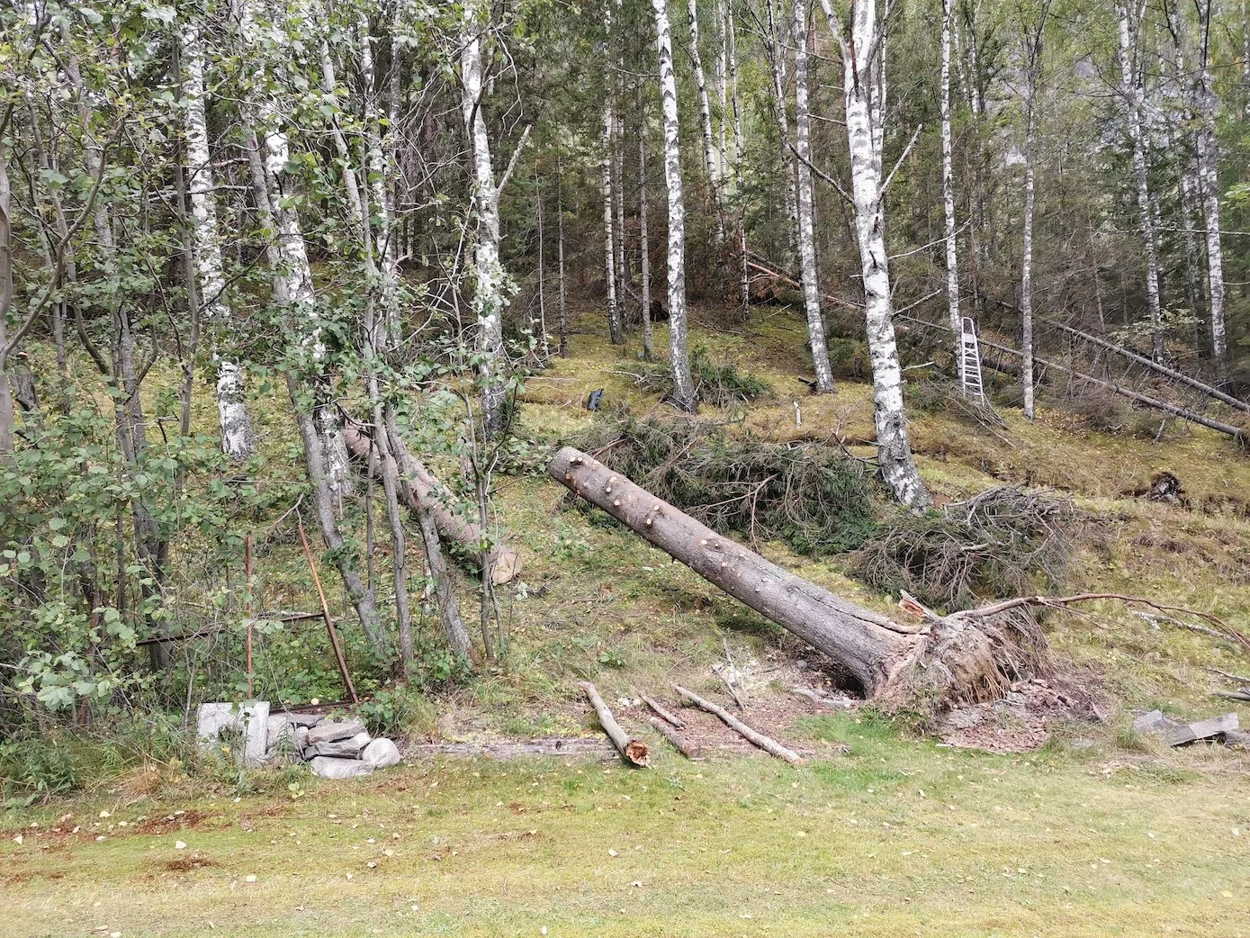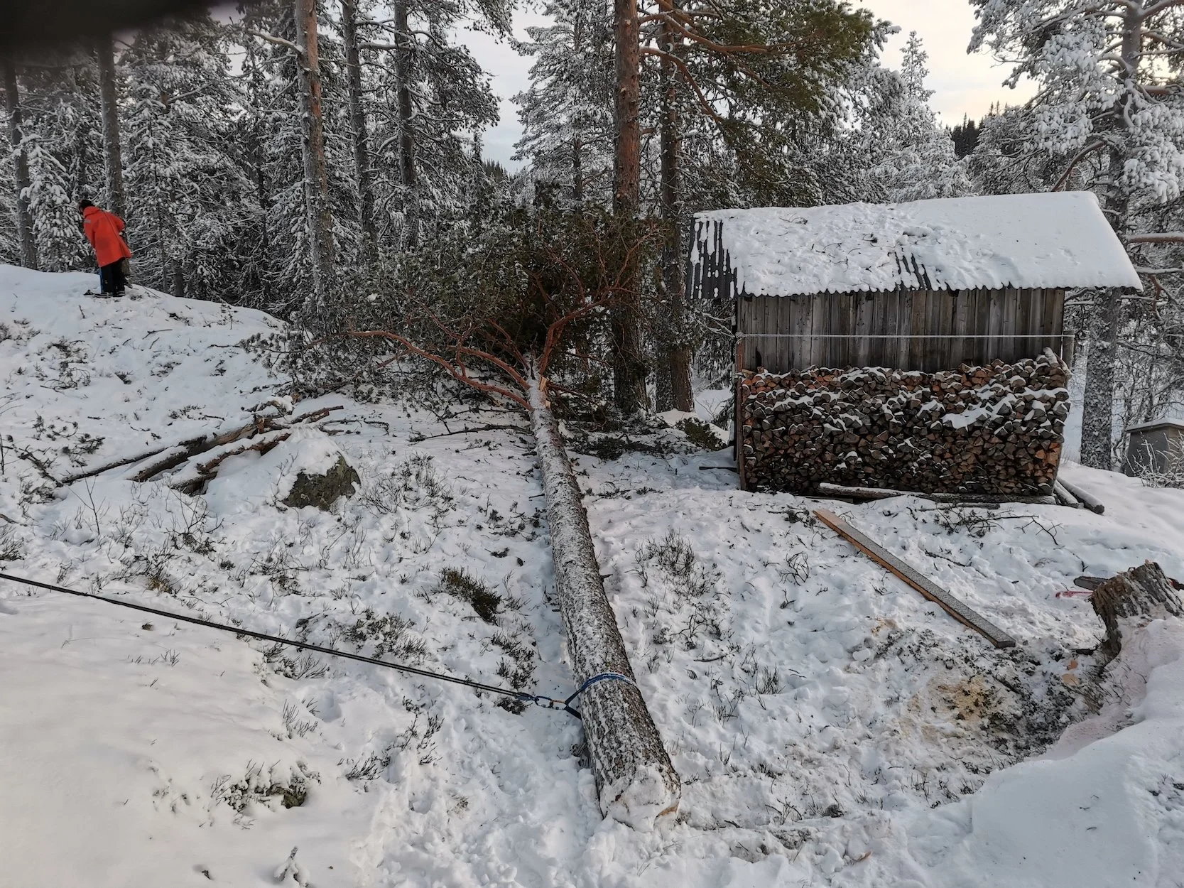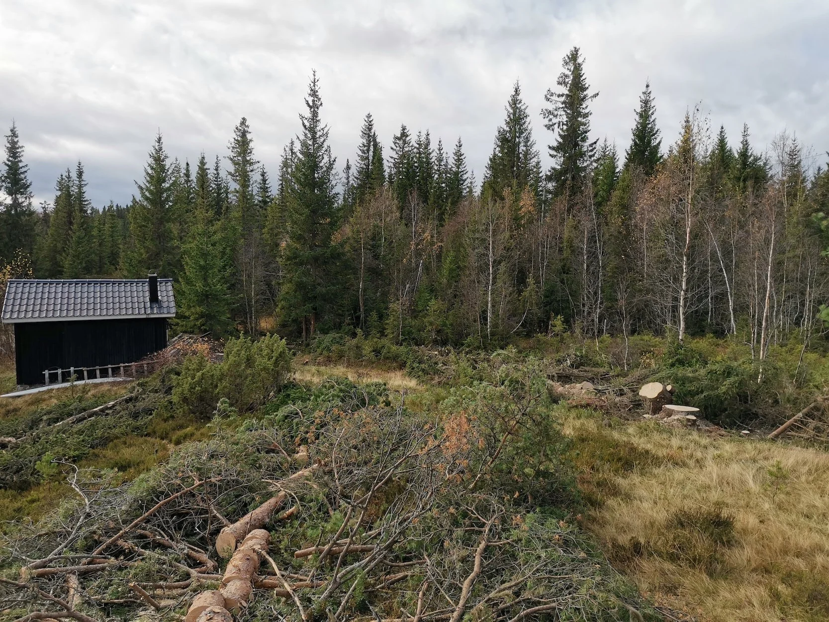 Opprydding i forbindelse med vindfall på hyttetomt.