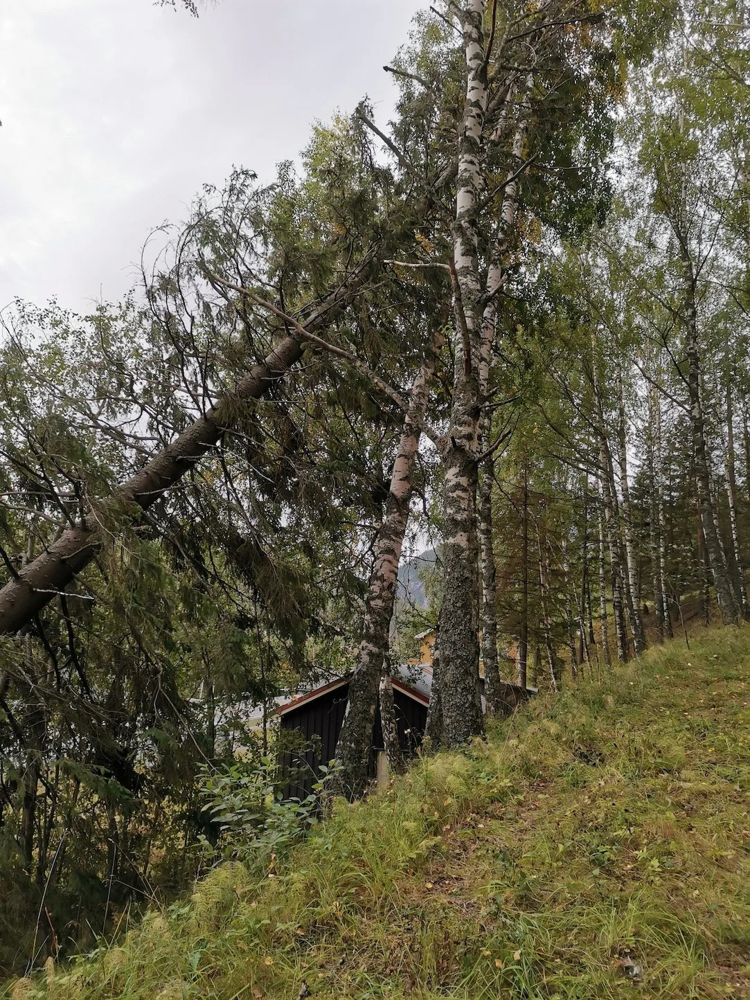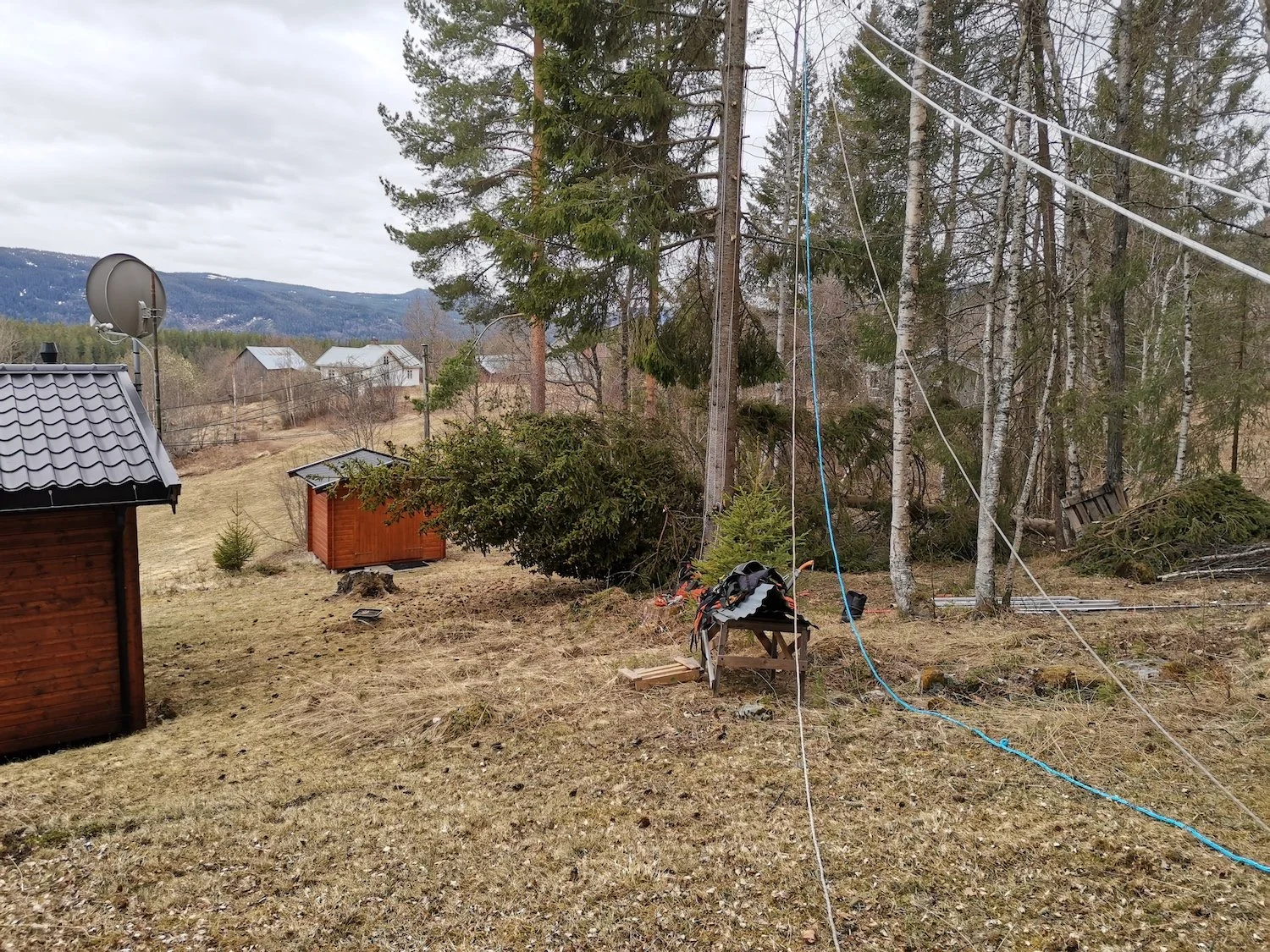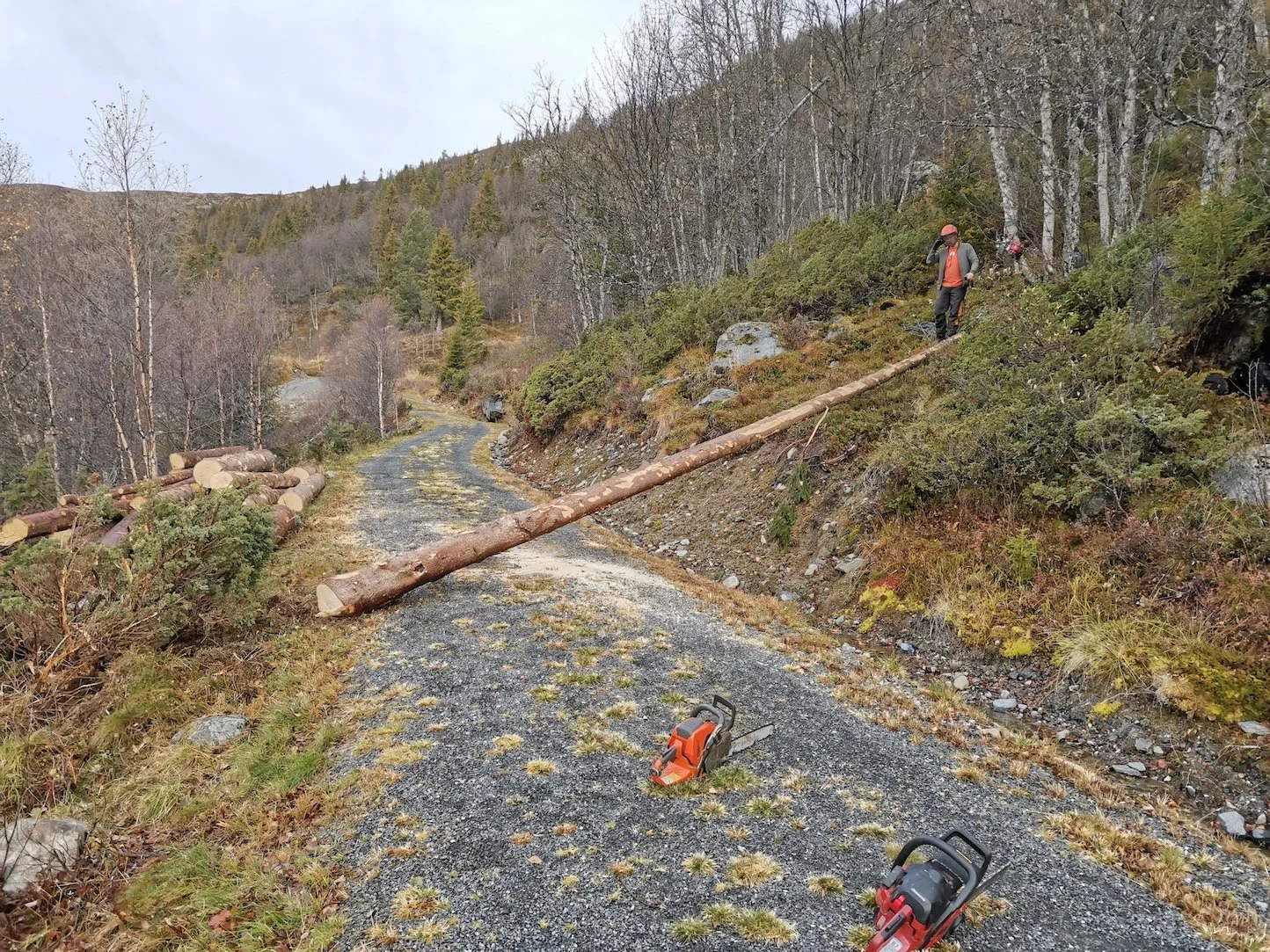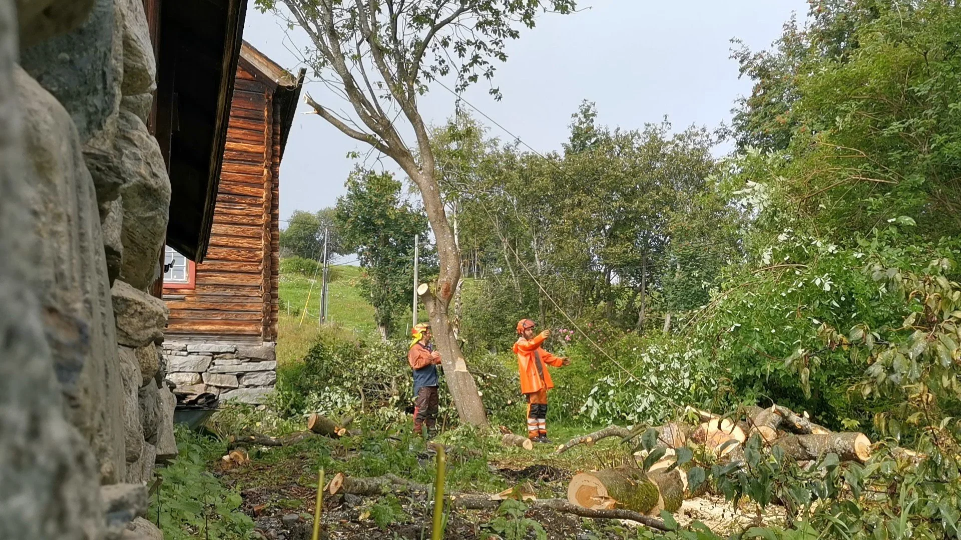Opprydding i forbindelse med vindfall på hyttetomt.