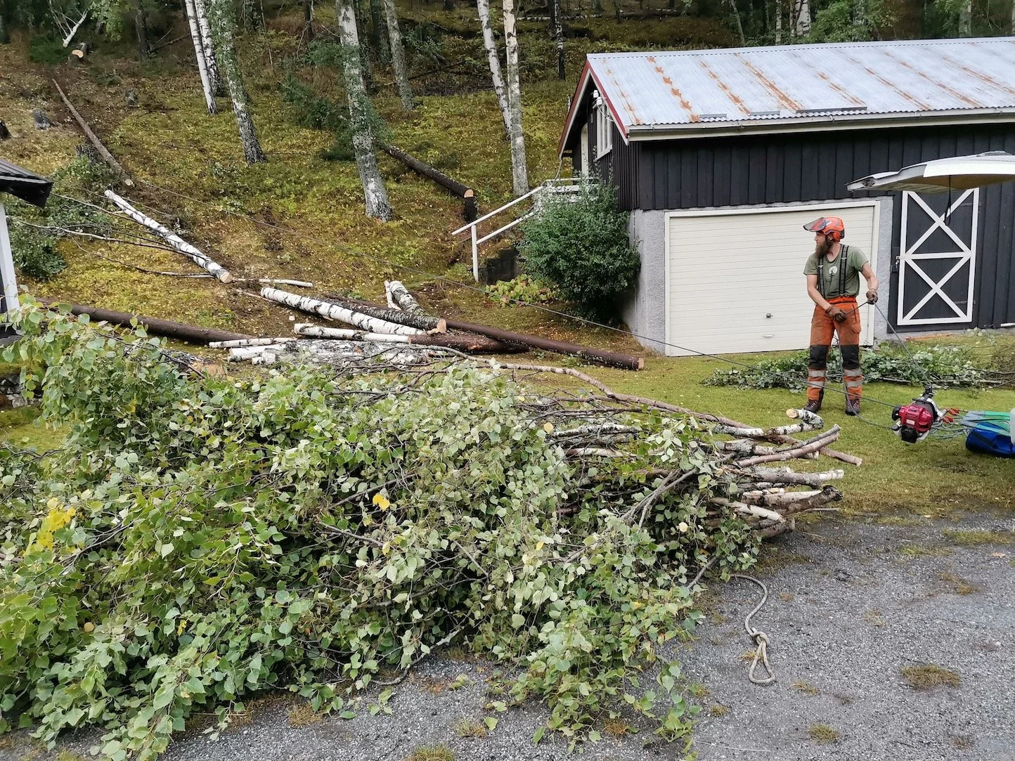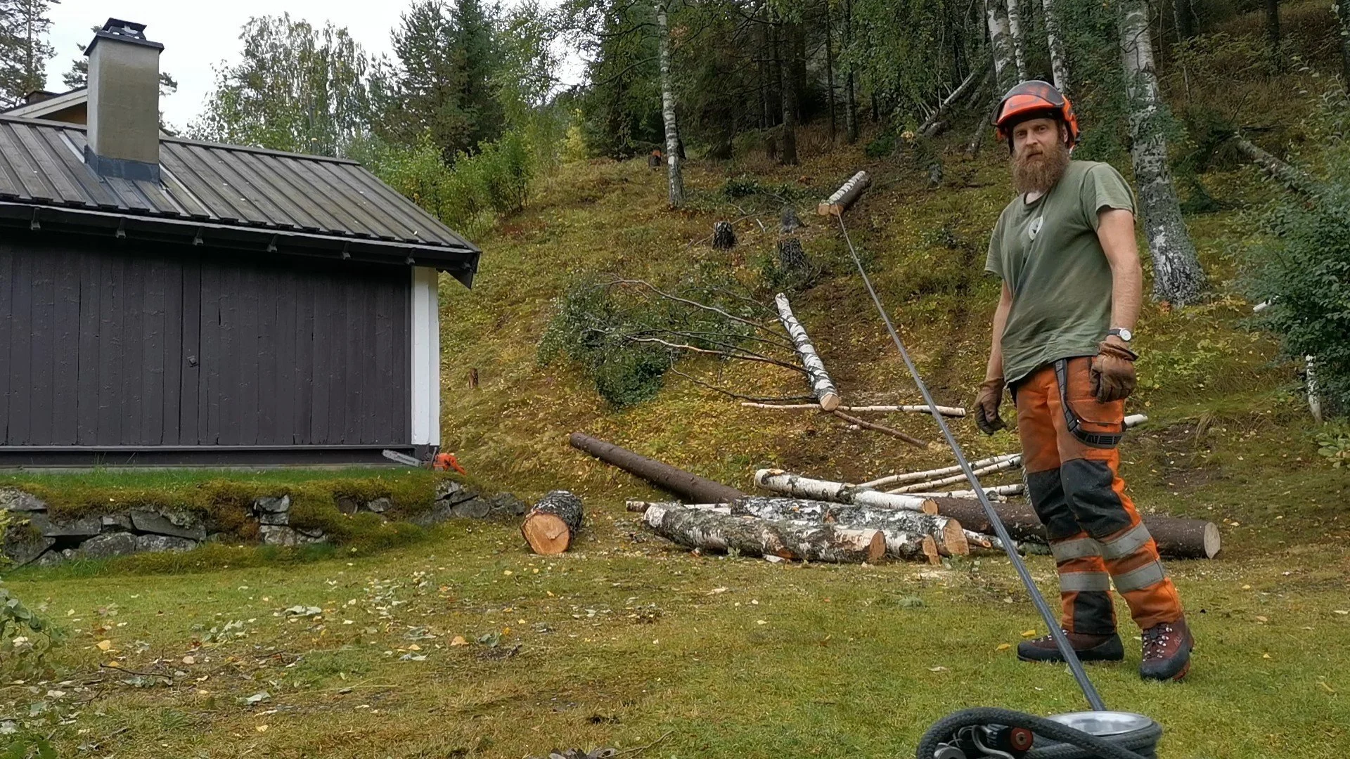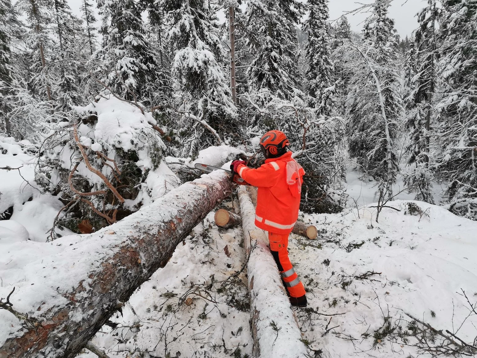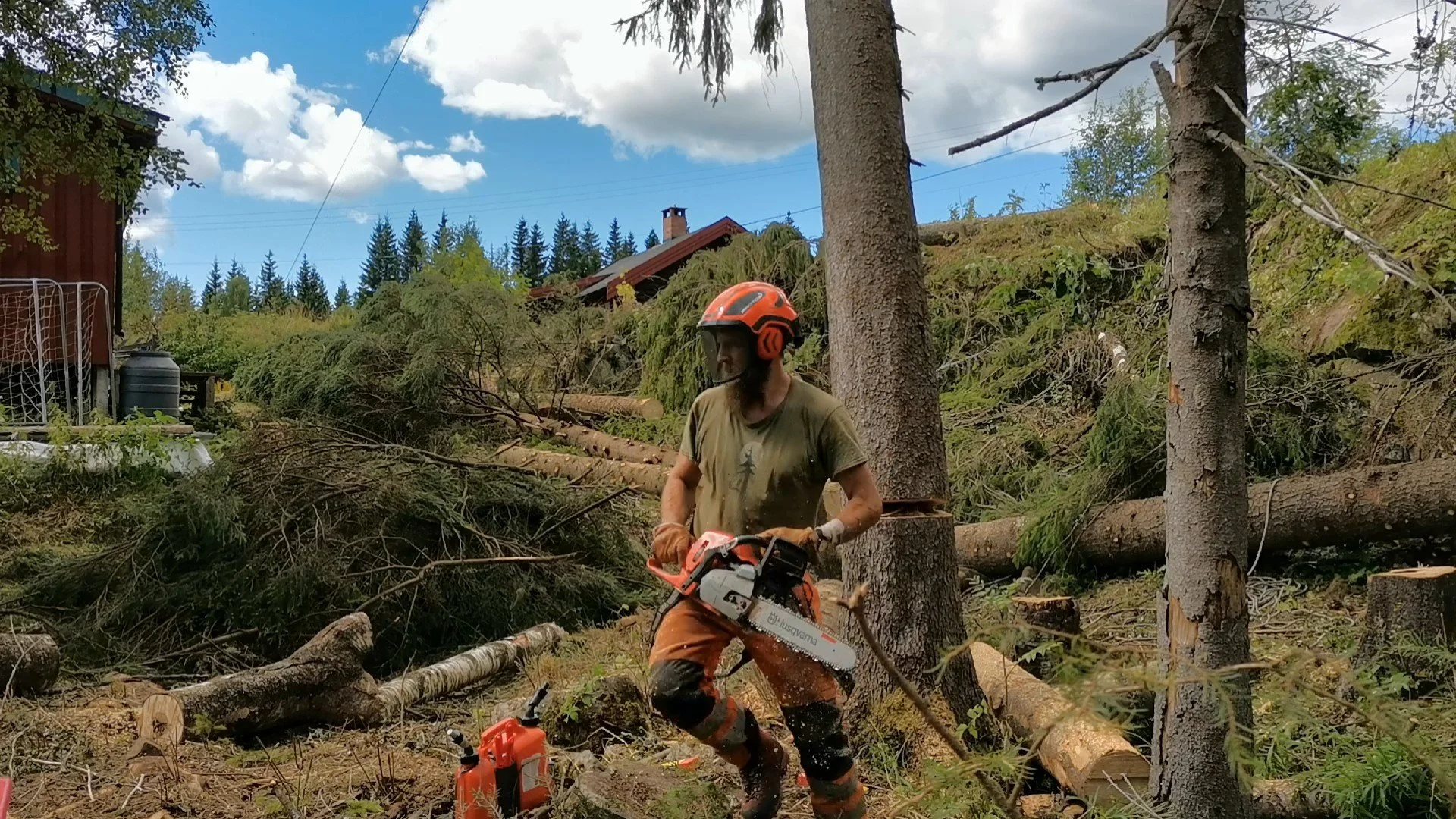 Opprydding i forbindelse med vindfall på hyttetomt.