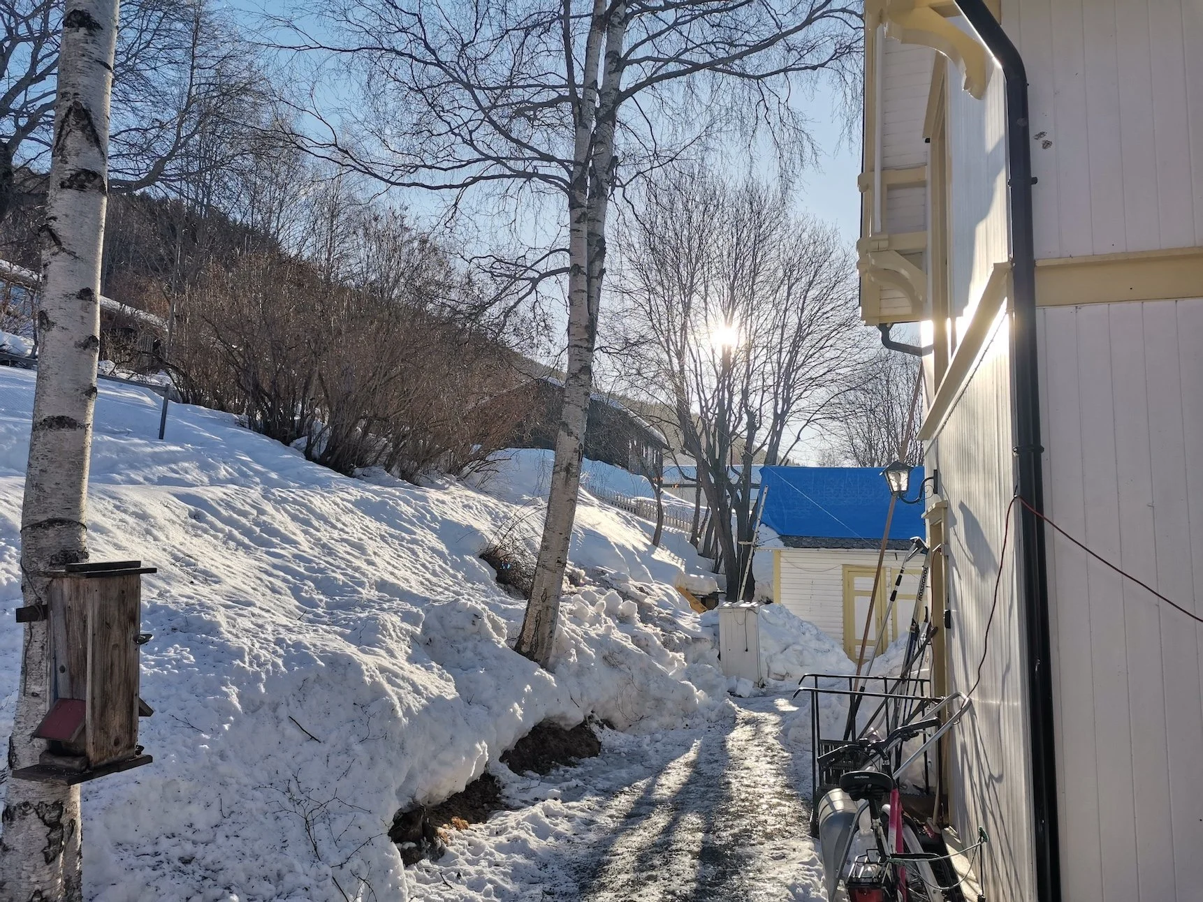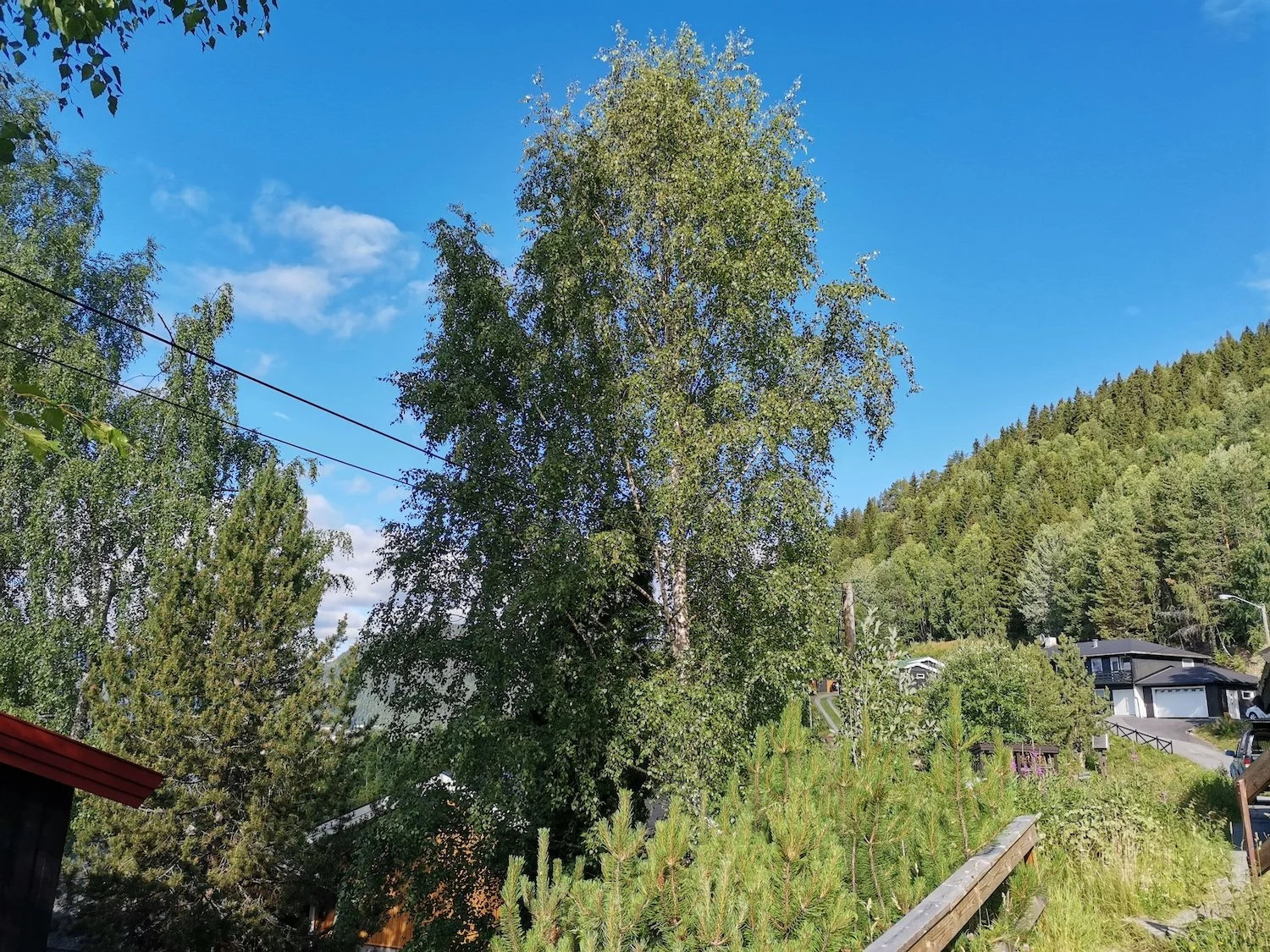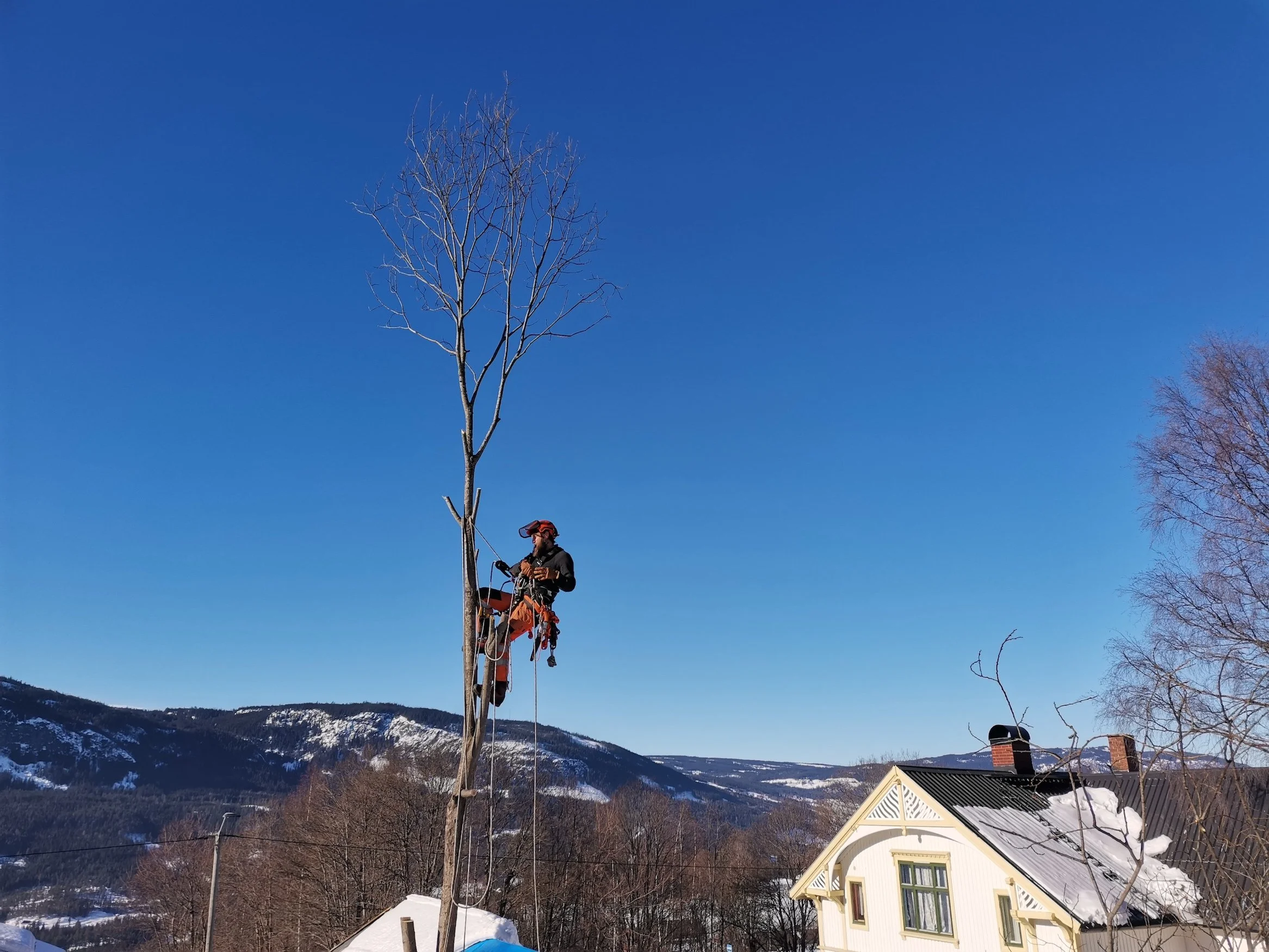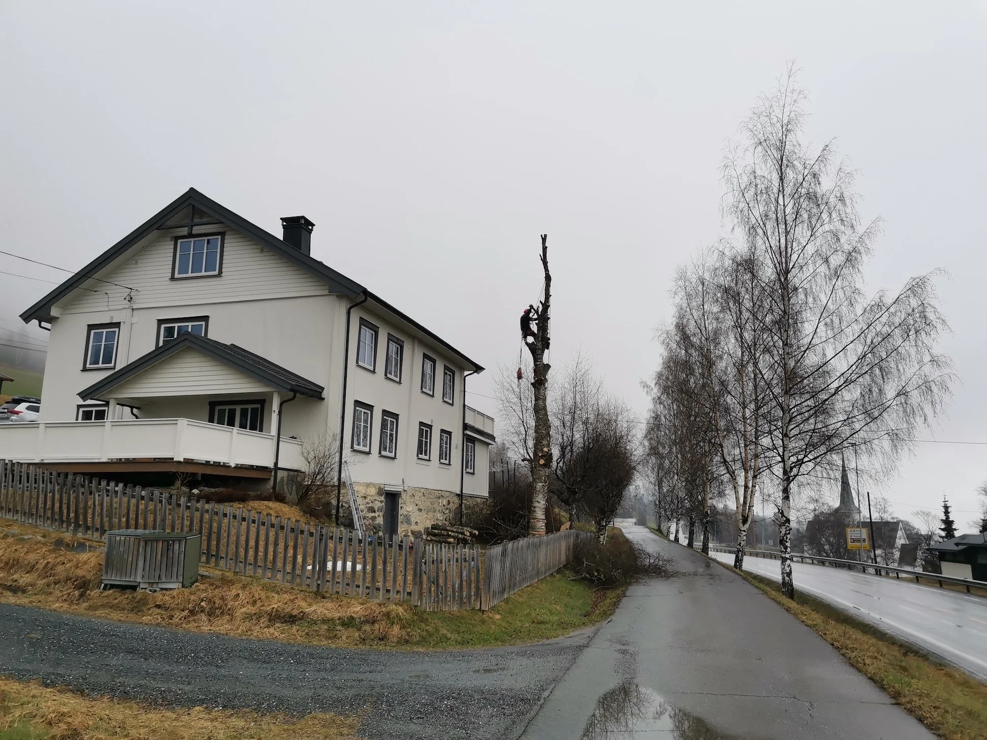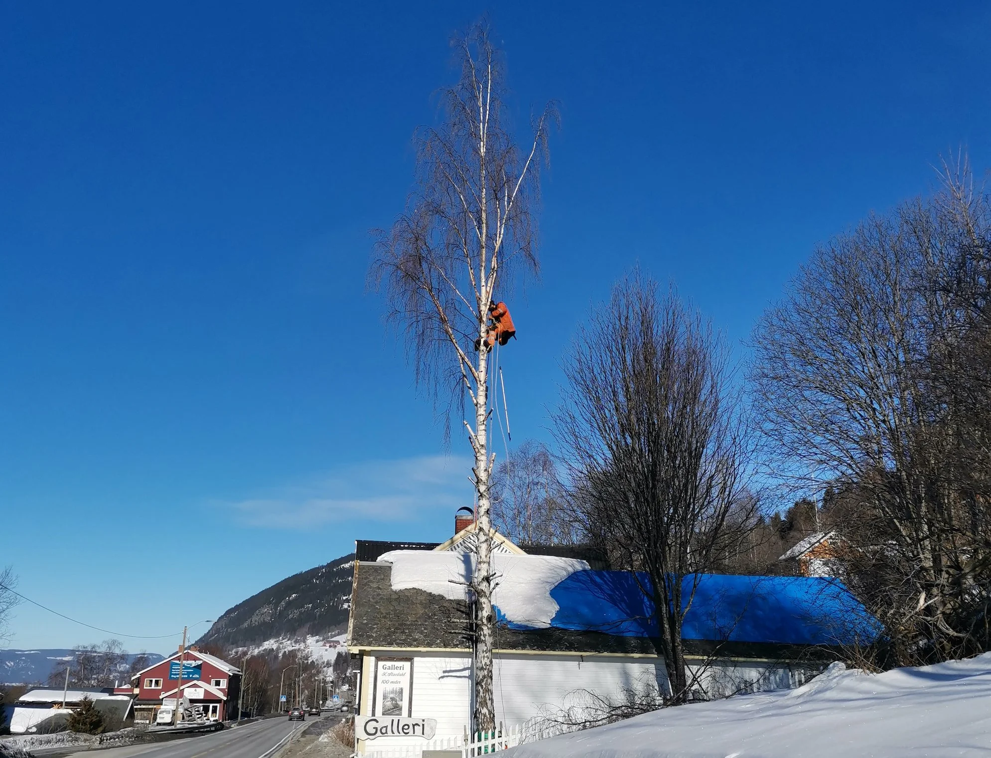 Seksjonsfelling av bjørk vha. klatring på hustomt.