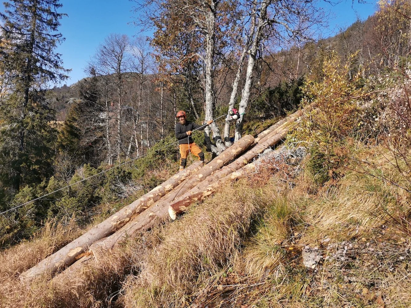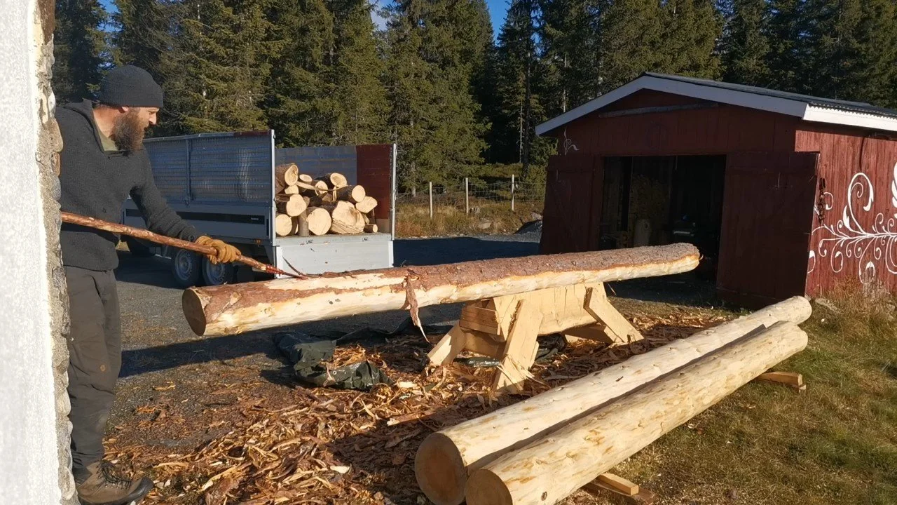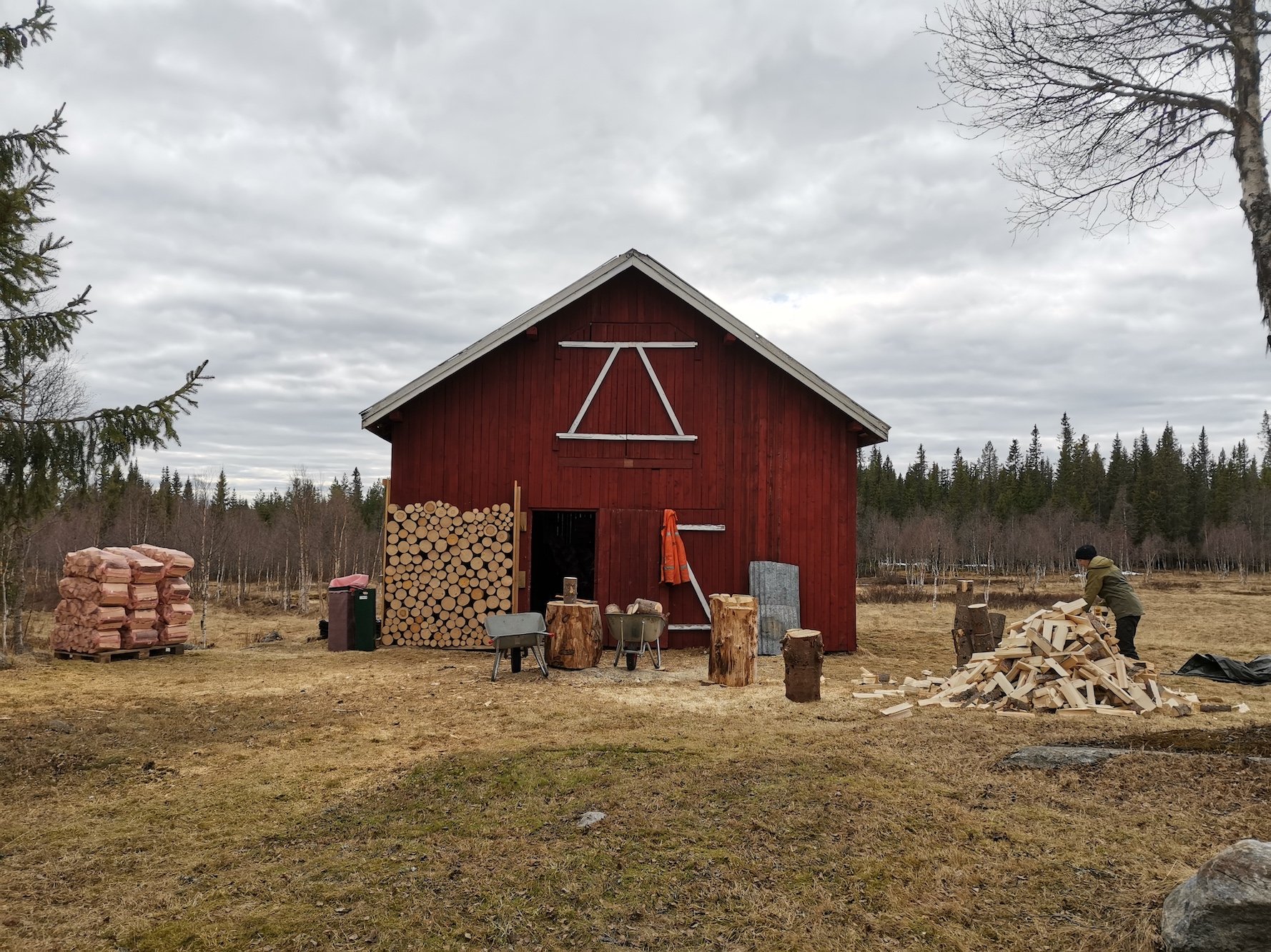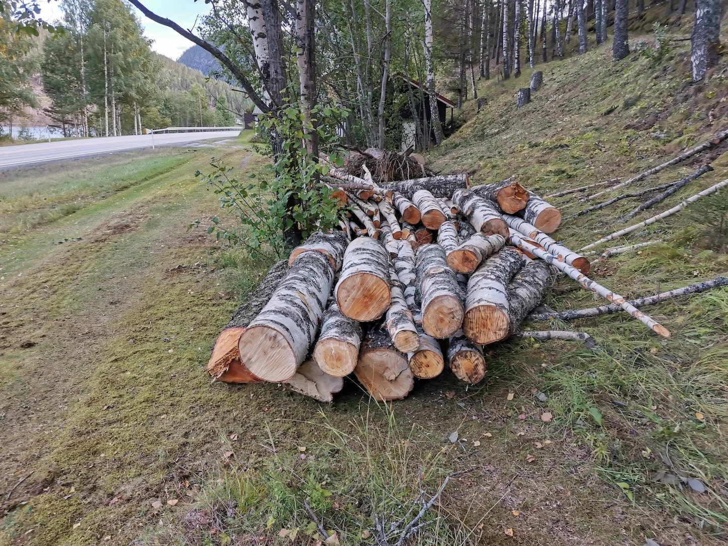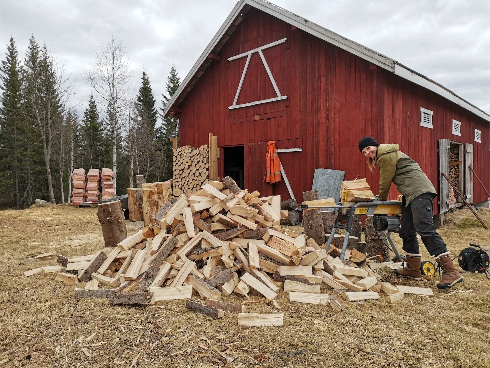 Produksjon av ved og barking av furustammer hos Utsikta AS.